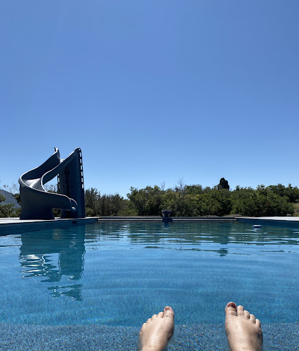 After a few tweaks and a lot of education (first timer here) we have a shiny, gorgeous pool and hot tub with an incredible natural rock waterfall, a matching slide, bubblers and lights.