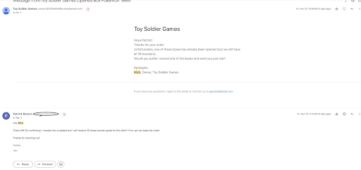 The owner of Toy Soldier has since removed my messages, and refuses to provide an explanation as to why I am being discouraged from this path. As a resident of Amesbury for 10+ years, and as a mother with two school-aged children in Amesbury’s public schools, my intent is to build ties within the community and use the tools and resources of gaming to bring people together.