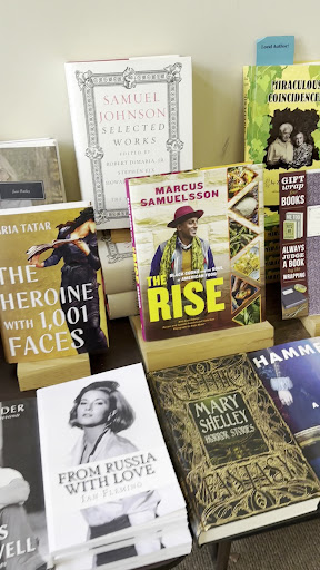 A large selection of books for all ages are available on 2 levels. The downstairs has books from floor to ceiling with 2 ladders provided to reach the book of your choosing. There is also plenty of seating downstairs while you decide which book to bring home. Also, was in need of a birthday card to send and found this here as well. My daughter was excited about the poetry machine that both dispenses poetry and has a way to submit poetry...
