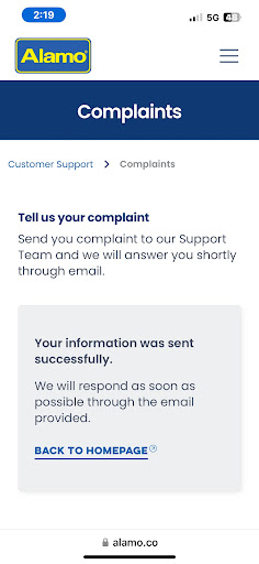 Read moreThis is my second time leaving a negative review. Following the reply on the official website last time, telling us to contact customer service, I got up in the middle of the night just to reach customer service, only for them to tell me to call another department. If we could make a phone call, why make the situation so complicated? The entire Alamo service is incredibly unfriendly towards foreigners. Now that I’m no longer in the country, they just handle things casually. No one reads emails or replies to them, which forced me to continue expressing my dissatisfaction here. I want to warn all foreigners: don’t rent from Alamo just because you’re going to Disney. If any issues arise, they won’t care about helping you once you’re back home. They only want to blame us for previous issues while focusing on fixing the car and collecting money, completely ignoring what the customer has caused. Truly excellent service – I’ve never experienced anything like this.