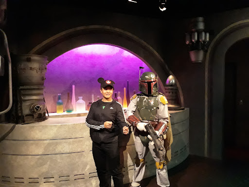 The staff is super knowledgeable and friendly — they know their Star Wars lore and are more than happy to chat about characters, storylines, and even lightsaber details. The atmosphere is immersive, with Star Wars music playing in the background, and there are plenty of great photo ops, including with the speeder bike outside the entrance.