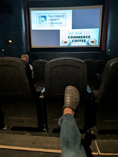 Amazing little one scream movie theater!!! Been in business since the '30s, It's even in a cool little slice of Americana area of Anderson, Missouri. Price was amazing, even the food was amazingly priced. It's like jumping in the wayback machine! If you sit in the middle aisle, the seats in front of you are so far away. I couldn't even touch it with my foot stuck out, and I'm 5'11. So there's an amazing amount of leg room. The seats even rock (as in rocking chair). In fact, the only thing I can say I thought could be better was I wish the seats reclined like they do in some theaters these days. It would be especially nice with all that room between seats. But that's the only thing that I can say as a negative.