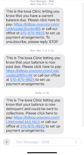 Read moreEDIT** The Iowa Clinic responded that this doctor does not work for them, however, I received a bill for urgent care at The Iowa Clinic Ankeny Campus, and the dr listed on the bill was Bohlender. If she doesn’t work for the Iowa Clinic, why are they sending me a bill for her services???