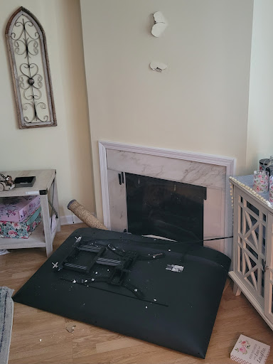 We hired Home Sweet Home Theatre to hang a 55" in our new home a back in 2021. This was supposed to be an extremely simple job. In August 2023, we came home one day to find the TV on the floor, destroyed, and two holes in our wall where the TV was mounted. It appears this mount was never installed on a stud, just drywall. Not only is it common sense to install on a stud, the mount's manufacturer states this in the installation manual as well.