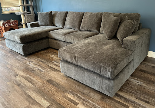 I wanted to review this couch the minute it came. I was absolutely in love. But I waited to see how it really felt and lasted. OK, it's only been 5 months, but I sit in the same spot, and you can't even tell. No butt indent at all! I got the medium furniture cushion. The sectional is 3 one way and 4 the other. They custom made the cushions is one cushion instead of the 3 or 4. Less places for stuff to fall into. It's extra deep and tall as I could get. Perfect for my 6'3"son, and me to curl up on. So comfy to nap on. It's absolutely so durable. The dogs and kids playing on it. Still looks totally new. OK next was the sales staff. They are so great. So helpful and patient. Trying to make a decision is much easier with the years of experience they have to help you get exactly what you want. There's so many options so it's not easy to decide. I absolutely recommend this place 1000%. I looked at many places and they have proven to be the...