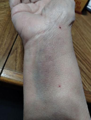 The tech came back up and I explained this to her and she said, "it doesn't need to be wrapped the wrist is stabilized." I explained about the fingers and she said, "I don't understand how this would be different" and seemed very annoyed. I apologized and said I would've done it if I was medical and she responded, "You don't need to be medical but ok." I was mortified as we were in the front lobby in front of all the waiting patients and everyone could see what was going on and hear it.