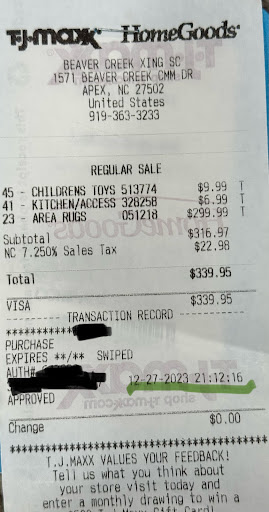 Read moreI love shopping at HomeGoods I’m at the store almost every weekend, I even have their credit card. I never expected this kind of behavior. I bought a water tumbler on 1st Jan, I realized it is damaged after removing the wrap, unfortunately I have removed and the thrown the wrap immediately so I did not have a tag or anything when I took it for returns on Jan 5. It seems like store has 2 managers one for TJ Max and other for HomeGoods and they claimed its neither of their product(this item is at the rack near checkout counters so I could not tell whose it is). I did have receipt and clearly showed the line item, TJ Max manager checked the item and cross checked list of items in her database and told its not from TJ Max. HomeGoods manager did not even care to check and blames me that it’s my responsibility to check the item before buying it. I agree that I should check but it was wrapped the dents were covered 🤷🏻‍♀️. He says it’s damaged and cannot return it. So I could not return it. Apparently this person don’t think its their responsibility to sell...
