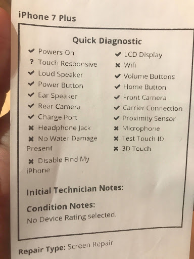 Read moreAlthough my device was properly fixed and works well, the communications that I received from certain staff were very scarce. Customer service was extremely lacking as well. On the day of my device drop-off (Sunday, August 8th, 12:00PM), I honestly didn't feel welcome in the store even when I was the first customer of the day. Starting off, I had to update the alternate number I provided, because I realized that the last four digits were wrong. The 2nd technician I encountered informed me to write the correct number on the back of my receipt and he'd go to the back to update it since the store was already busy with a long line of customers. I stood there for at least 30 minutes waiting for him to come back to the front just to remind him that I needed the receipt back.