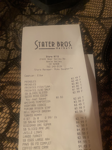 January 2025 Our family has used Stater Bros Up and Down the Hill with great success for many years now. For our family living Up the Hill, Stater Bros store #110, located at Bear Valley and Navajo in Apple Valley is our local grocery. Dalton was a superb assistant manager until he was transferred. Now Gabriel is the store manager and also superb. One of the many strengths exhibited by these two leaders and others at the store, and their regional headquarters, is their ability to listen to and care about what customers have to say.