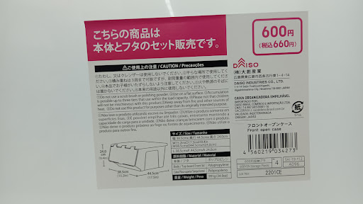 The Daiso chain sells inexpensive household goods like those you find in Dollar Tree and 99¢ store, except the items are designed by Japanese producers, and sell at $1.50 (Daiso slogan: "Everything Priced $1.50, except as marked")