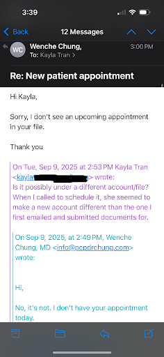 Read moreI helped my father change his PCP to Dr. Chung. After a trip to the E.R. we really needed to have him seen as it was encouraged by the E.R. Dr. I spoke with Ana and explained my father's situation. She was so very helpful on getting my father input into their system, emailed me the new patient packet, and explained what was needed so my father could be seen asap. She also advocated for my father which impressed me, and gives me peace of mind my father is in good hands. Best experience I have encountered thus far with a Dr's office staff. Shout out to Ana for providing top tier...