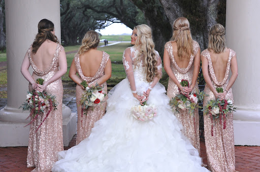 I ordered my tuxes and my bridesmaid dresses from moments and could not have been more happy! So, #1 I am the type of person that I know exactly what I want and that can be hard to find when you are so specific. I sent Allison a photo of the bridesmaid dress style I wanted and told her there was only 2 colors I would go for. She got back to me the same day with lots of options. That same day I had made a decision and we started the ordering process. #2 I grew up in Ardmore but live in Iowa now and 75% of our wedding party is nowhere near Ardmore. I honestly was very nervous that tuxedos and dresses would not fit correctly. Allison had everyone send in measurements and she reviewed them for possible errors from other shops in places like Brazil, Iowa,Texas and Kansas City. Guess what 2 of the sizes were very off and she she called me and asked if these might be incorrect. One was my grooms tux. When we went back to the local shop here in Iowa the owner verified that the 1st person had mismeasured his jacket. His Jacket would have been way too small in the arms and double the size he needed in the waist. The other issue was my father in laws pants were measured way too big, like 4 sizes too big and Allison knew something wasn't correct by just looking over his other measurements. Thank God she took time to look over these. Most shops would just say that was what you gave me, your problem not mine. #3 My wedding was in New Orleans. Allison neatly boxed up the tuxes for transport and made the return process very easy. I had first looked at other places for tuxes thinking that it may be easier to have all the guys from different states go to places like David's Bridal. But David's bridal wanted the tuxes back the next day and everyone was staying a few days in NO. Allison never acted like this was an issue.