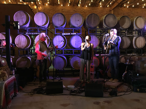Arizona’s oldest winery is accessed by way of a meandering series of roads, a tight turn off of the roadway onto their access road and a narrow gate crossing over a Texas Gate. Once on the property RV’s will also need to open and close a gate on a separate access road (do not attempt to avoid this by staying on the main driveway as you will not make the final turn into the parking lot). Once there, the parking area for Rigs is huge and you simply choose where you want to park. The parking area was quite level grassland. We found it to be very quiet and the views of the surrounding mountains is great, especially at sunrise. They have no issues with generator usage and don’t mind you staying up to 3 days. The vineyard and winery was founded by Dr. Gordon Dutt and today is run by his son, Rocky, and grand-daughter, Laurie. You will also by well entertained by the fourth generation as Laurie’s daughter is an often present source of entertainment. Rocky and Laurie are both very personable and great sources of information on the history of the winery and of the wines that they offer. They have a number of very good wines to suit a broad range of tastes and will give you a personal tour of the facility. In addition to the Tasting Room, there is an outdoor patio and BBQ area, covered picnic tables and another open picnic area. Overall, this is a great place to visit and spend the...