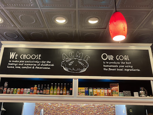 Read moreFirst time going to Acme Pie Company. It was a little hard to notice, as the sign didn't pop out from the street. Best thing to do is go past it and park in the parking lot on the left hand side and walk back up...if you get to the CVS, you've gone too far. There was a great assortment of pies, and ready to eat. We got a key lime pie...was hoping for a lemon chess pie, but they were out for the day. The person taking the order was extremely nice and accommodating. They even loaded up our bag with extra plates, forks, and a plastic knife so we could eat it at the park. Definitely will be getting repeat...