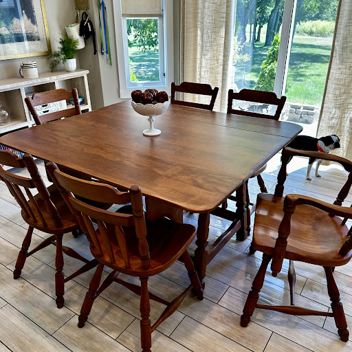 Mr. Shrock and his son refinished the table top of a vintage (early 1950’s) maple tabletop for me. They ended up re-doing all of the joints in the process. The tabletop came out...
