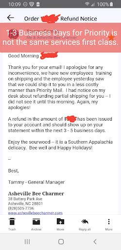 We went to charmer and loved what we got (sour wood, raspberry and lavender ) I decided to order Honey for Christmas for my mother. I did this all online . my debit card did not go all the way through due to a new debit card. Not too long after I had given up temporarily (I was at work and didnt have time to validate ) a charming girl from charmer called me and said that their system was messing up and wanted to make sure everything was OK . I informed her about my new card and I was also concerned because a couple of items were low in stock. She put everything aside for me, she took my phone number and told me that if my card went through or the system got fixed she would text me. I communicated that it would be at least 2days, due to work, before I could call back. The next day she texted me something terribly sweet that I don't recall..but it was somewhere along the lines of have a nice day. When I did finally get to call , the system was still weird and just the process of canceling an online order for a post order took about 30 mins. We talked like we had been best friends for years. As the situation was done all I could think was "this is how it should be ". She wrapped it extra special because she knew it...