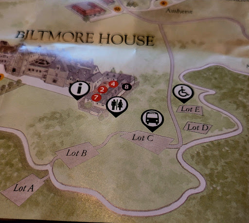 Lot E, with accessible parking Round-trip ADA shuttle service to Biltmore House from the Park & Ride Building
