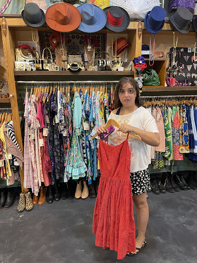 I am leaving this review as a vintage curator for context! This is a very interesting store with a lot of unique finds for very reasonable prices! The staff were also friendly and helpful. The only reason why I deducted a star was the jarring random modern fast fashion pieces priced THE SAME as vintage pieces. As in, I saw an Amazon fast fashion corset you can buy right now for $20 that’s low quality priced at $55. The tag makes it obvious too even if I hadn’t seen it on Amazon. I also saw modern band tees you would find at Walmart or Target priced the same as the vintage band tees which makes no sense to me. It’s pretty common knowledge that printed on tag means modern but these very generic mass produced shirts were priced the same as the vintage ones which I feel could mess up for the experience even for someone that doesn’t know their vintage. “I could’ve sworn I saw this in target last year…” I just wish there was a bit more of a review process to make absolute certain that the pieces are good quality...