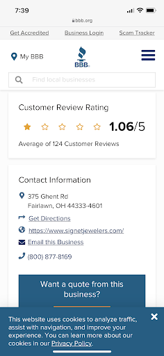 Ā Ā Ā Read moreWhere do we begin with this? Letās start back on May of 2017 where I purchased an engagement ring. Well everything seemed to go smoothly in the store until the bills started to show. Well apparently when you send a check in the mail with the STATEMENT it doesnāt get put into that statement. Thereās problem #1. Problem #2 how does one go about fixing it? Well you see you call them and say you āMISAPPLIEDā my payment, which I might add was a monthly basis I had to do this. Iām sure if I would have handed them a check personally theyād still misapply it. Then their banks switched which was problem #3. All the paper work needed for my current dispute it hard to gather for them, even though I supplied to them. And now problem #4 is that Kay jewelers has $400 of MY money floating around and when I contact them every person I talk to gives a different story on where the money is located. Every month Kay and Comeitity Bank get a call from me and yet the issues still are not figured out. So here they want me to send in the same paper work in that I gave them. Well clearly if they canāt handle a payment why wouldnāt it surprise me to see they canāt handle a dispute. I understand if it was one month but to be dealing with this issues from day one umm itās getting old. If your reading this and are thinking about Kay Jewelers, all I can say is walk away and go somewhere else. I will admit the people on the phone at cometity are very nice. The people at the old bank that Kay used were very disrespectful in every...