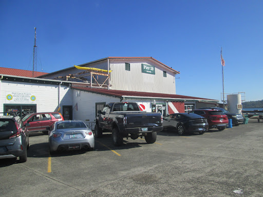 Parking is limited on the pier and is reached by a narrow planked bridge.