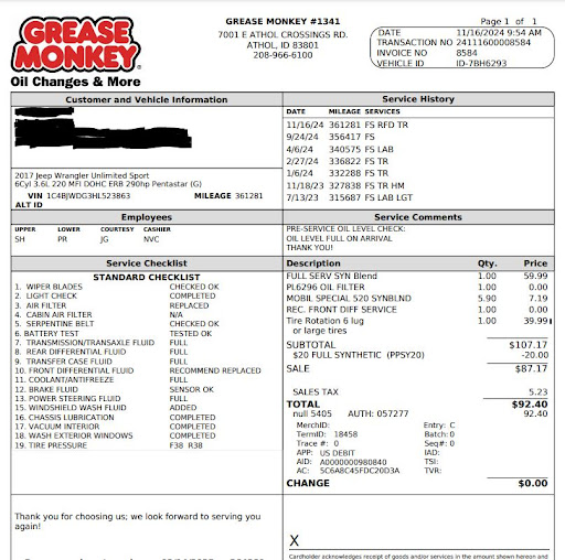 Just received a call from the owner of Grease Monkey and he apologized for the pricing mix-up and will be compensating me for the inconvenience. I really appreciate the time Chris took to get back to me. This is a training opportunity for him and his staff and he thanked me for bringing it to his attention. NOW THATS...