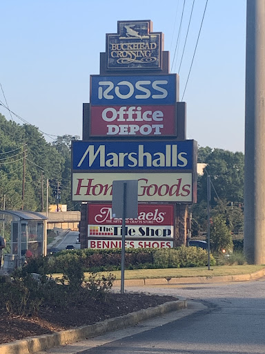 Stores located here are in order left to right: Michaels Crafts, The Tile Shop, Home Goods, Bennies Shoes (and repair), Office Depot, Ross Dress For Less, & Marshalls.
