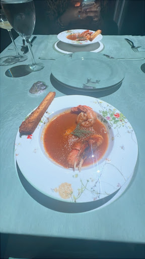 The food was fine at best. It was similar to food you’d get at an average wedding. Arugula with some mozzerella cheese and cherry tomatoes, under seasoned soup with a couple of shrimp and some bits of seafood. A chicken thigh which I thought was tasty , a small piece of beef tenderloin and potatoes and an undercooked crème brûlée.