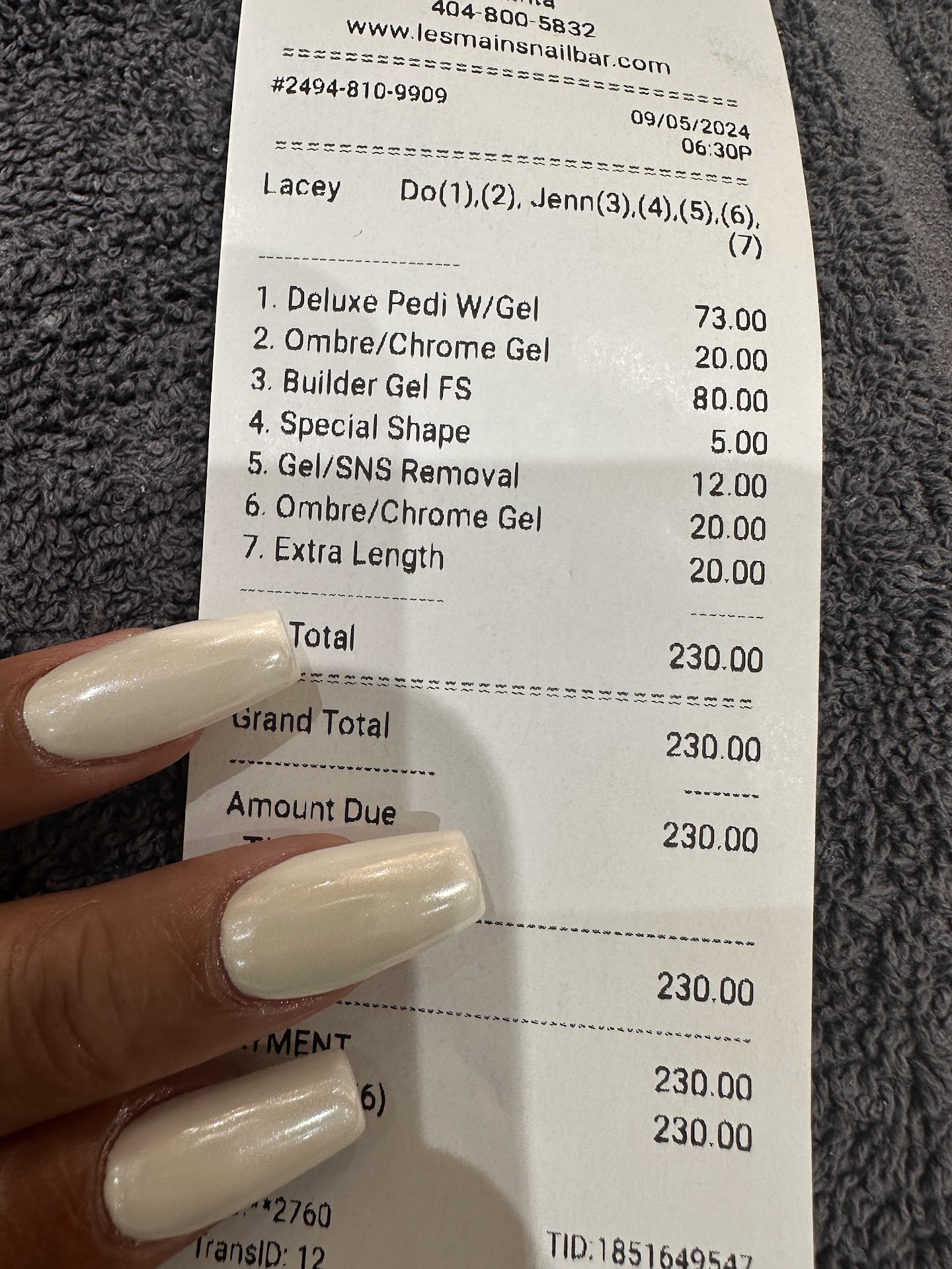 Read moreI’ve been a loyal customer of Les Mains Nail Bar at The Works since January 2022. I regularly booked pedicures with Lewis and, for the last year or so, SNS manicures with Jenny. I always tipped at least 20%, arrived on time (if not early) for my bi-weekly 9:30 AM appointments, and was consistently kind and respectful to everyone.