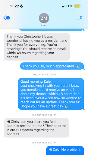 My apartment was not move-in ready when I arrived with my truck and movers on Friday, January 12, 2024. The 1 toilet wouldn’t flush, the floors were peeling up, and the heat didn’t work despite outside temperatures being in the low 20s. Maintenance initially tried to tell me I’d have to wait till the following Tuesday for assistance until I escalated this up the ladder and was finally assisted when a vendor came to replace the broken thermostat. Over the course of my lease, amenities (including the club house, pool, and fitness center) were closed more months than they were open despite monthly rent payments including “community electricity” charged to residents to cover management’s utility bills. There is no system for parking. People are allowed to park in the middle of the street, blocking those in actual parking spaces from getting out. They also blocked the 1 gate that provides fire trucks access to the back of the property where a fire had just engulfed 1 of the buildings less than a year prior. This was communicated over a dozen times by email/text and were completely disregarded, causing me and other residents to have to Uber simply bc we couldn’t get our cars out of the community. My home was entered without my knowledge not once, but twice. No email, no text, no call, no follow up. When I announced this, I was told that they don’t have to inform me if it’s an emergency, which is untrue according to my lease and standard Greystar policy. I placed multiple maintenance requests for my 1 toilet that continued to not flush properly, the electrical outlets in my kitchen that never worked, and the water pressure that frequently became low due to constant water maintenance on the property. Not only were none of these things handled, but the maintenance requests were closed as completed each time I opened them. Over Labor Day weekend while gone camping, my home was broken into, both the front door being crowbarred in as well as the porch door being broken. This was done by the police and fire department who mistakenly broke into the wrong apartment for a “wellness check.” Despite the city calling a recorded line and telling the Maintenance Supervisor about this, no one called, emailed, texted, or in any form communicated this to me, leaving my home open and exposed for 4 days resulting in a robbery of over $10k worth of belongings that I’m still struggling to recover through State Farm. The property refused to take any accountability for this and told me the best they could do is let me out of my lease 3 months early. I still paid for September rent and was moved completely out on Monday, September 30, 2024 after having the apartment cleaned and detailed. Today makes day 70 that I still have yet to receive my deposit. I was told on September 30 by text that I’d have communication about receiving my deposit within 48 hours. 2 weeks later, I received a text requesting my forwarding address bc they had “misplaced” my information. 3 more weeks later, I was told they had been without a regional manager so things were backed up. 2 weeks ago I was told they have a new regional and I was “on their radar.” Today makes day 70 that I’m still waiting on this. I’m sure this property won’t allow residents to continue living there without paying rent for 70 days, so I’m completely baffled how they consider it acceptable to not pay back funds OWED to residents for 70 days.