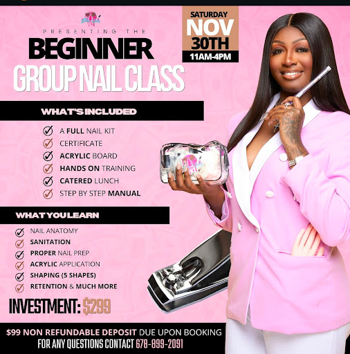Read moreI can honestly say this is the best nail class I have attended. She really took her time to teach nail application, the best products to use and not use and the best places to get your procuduts. It was very professional and I had an awesome time. I was able to meet other nail techs and make connections. If you want to learn how to do application, shaping, marketing your brand and yourself all while having a great time this is the class for you. It was a pleasure to meet the owner of...
