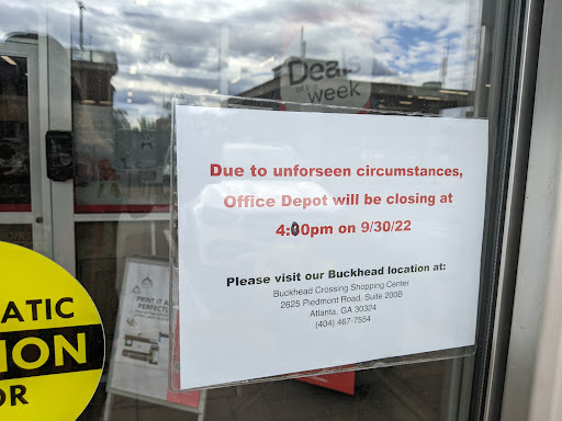 Read moreWorst office depot in the city!!!! Every time I come here, I get stressed out!!! I literally get anxiety before coming here and sometimes drive further out to go to the depot on Cobb pkwy instead. These people close the store and print center whenever they feel like it and have no fixed schedule. They never know what they’re doing in the print center, talk more than work and the one manager is just as clueless and nonchalant. He can care less about your complaints or whats happening. Lazy good for nothing man !!!! Just sat in traffic to discover they closed at 6 pm today instead of 8 pm. My print order pick up was for 6 pm yet I didn’t even get a text saying it’s ready or a courtesy call saying they were closing early. No structure and bad customer service!! I need an another office depot to open up...