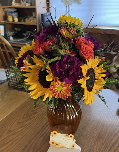 Living out of state I recently needed a florest who would take my order over the phone. Katie was wonderfull. One of my Child hood friends and neighbor had recently passed away. This family I hold close to me. I grew up with his sister and was once his wife's roommate. My heart ached for all of them in their los. I felt even worse that I could not get back for the service as we had also lost a coworker at the Runnings store I work at in SD. We are running on a limited crew with all that has gone wrong in the world right now. When I called Katie i was amazed that she even remembered me as It was 37 years ago I left the area and seven years since I had last placed an order with her. Katie knew exactly what I had in mind and went above and beyound my expectations. The arangment you delivered was beautiful! You made the transaction as easy as though I had walked into your shop the day I called. You are pricing is fair and the quality is high. Thank you Again for your high quality service to me and the comunity you are needed. Evonne Jensen...
