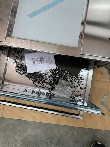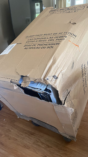 It took a month to get the appliances, which was okay at the time as the building was not finished yet. However, they said delivery would be 1-3 weeks and we ordered on July 22nd and received them on August 23rd. We inspected the appliances by cutting off the sides of the boxes and checking for damage. The men who delivered them were behind schedule and were rushing us to finish, but I inspected every side for scratches and dents by cutting the cardboard off the sides with a box cutter. Everything seemed okay at the time, and we signed the delivery papers and the men left.