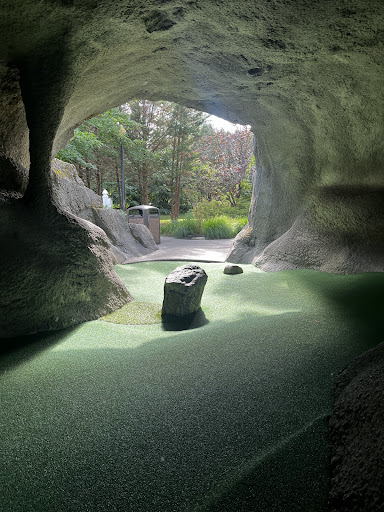 Today my 7 year old son and I visited Crystal Caves. We enjoyed the mini golf course. They do not have windmills and other distractors, but the holes were challenging, using a lot of elevation changes, rocks, and turns to create difficulty. The landscaping was pleasant with many flowering shrubs and plants throughout the 18 holes. The two holes that are inside a cave were a big hit! The holes that were closer to the road were a bit noisy, but that is not the fault of Crystal Caves.