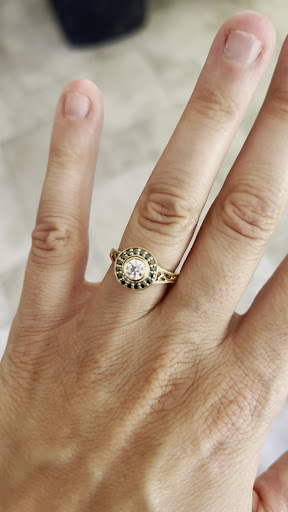 Read moreBack in November, my fiancé and I researched and found Sierra Moon Goldsmiths here in Auburn. We were looking for a business to help us with a custom made, raw diamond engagement ring and simultaneously needed to downsize my dad's wedding band to fit my fiancé's finger. We wanted to use the excess gold from the wedding band in the creation of my engagement ring. That's a lot of things to accomplish!