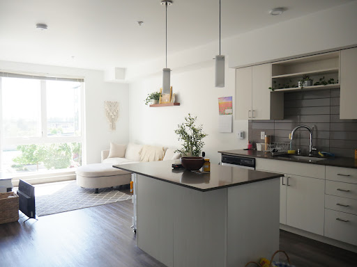 I've been living here for about 6 months with my fiancé and we love it here. We LOVE taking advantage of the movie theater room they have downstairs. It's so much fun. The workout room is certainly one of my favorites. It certainly does feel like you're living in a high class place and I absolutely love it. The rooftop is absolutely one of my favorite places. It's exactly as pictured. Mt. Rainier is STUNNING! A literal dream come true. In case if anyone is wondering what a standard 1 Bedroom looks like at this place, I took the liberty of taking pictures of my place. I didn't take too many pictures of our bedroom because we're still settling in lol! But the bedroom has a nice walk-in closet (Only took a picture of the door to give you a sense of where it is. Not taking a picture of the inside that's weird lol). There is a washer and dryer behind the door of the bathroom. It's certainly interesting but I like it. Regarding the bad review that Jacob put, I'd like to say that this place does NOT stink of dog urine or marijuana. I've not run into any of those issues. The apartment comes with a parking garage so I don't know why he's saying that he had to pay "hundreds of dollars" to park blocks away. I honestly don't know the office staff but they seem nice. I talked to them a couple of times and they've met my needs. The elevator literally works completely fine. "Standing there and repeatedly pushing the buttons so they can work" is absolutely an over-exaggeration 1000%! They work like any other elevator. Plus, we've got stairs to use too. The walls and floors are not paper thin. I've lived in a uni dorm for 4 years to know about paper thin walls. Sure, I can hear foot steps and people moving things here and there but it's not obnoxious. Yes, the trains are loud but they don't shake the whole building XD At least not in my experience. Honestly, I sleep with a fan on every night to help me sleep and I never hear any trains in the middle of the night. Occasionally, here and there I may hear a train or two in the middle of the night when I'm already awake but it's not crazy loud enough to disturb anyone during their sleep UNLESS you chose to sleep with your windows open, which I do not recommend. All in all, these place is very nice. Like any apartment you WILL run into some issues here and there. For us, we had a kid that kept pounding on our door and ran every night but once I told the staff about it, it stopped. Every apartment will come with their cons but honestly, we have not run into any super annoying issues while living here. It's a very nice place to live! 5 stars...