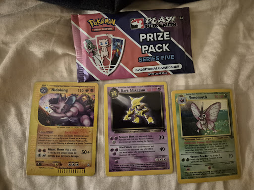 I traveled to Manchester for a funeral this week and one of the things I wanted to do the most was to stop in at a card store and browse singles. I had recently lost all my cards in an apartment fire and wanted to get a special card or two to commemorate my trip here. I didnt have a lot of money to spend so I picked the Venemoth and the Dark Alakazam. After Matt had heard what I went through, he went above and beyond to make this the most memorable experience I've ever had. Where I'm from we don't have card stores like this where you can browse singles like that. It warmed my heart soo much and it may sound silly, but it almost brought me to tears. It definitely left me speechless.