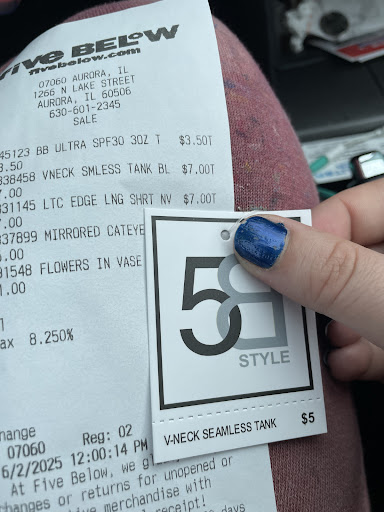 Read moreIt’s just like most Five Below’s but what’s really annoying is they have it set up for self check out and they won’t let you self check out. That makes it feel very distrusted. It gives a whole different vibe in this store. There’s multiple other options I will be choosing in the future and suggest you do the same. They closed all the self check out with out of service signs and do it themselves with you next to them it’s very offputting. I don’t mind if you wanna check me out but then do it like a normal register. Don’t treat me like a child, like I don’t know how to do this. It feels very mistrusting. Change your setup like regular stores or let me check my self out....