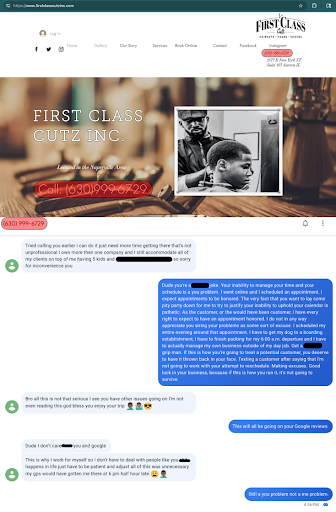 I was scheduled for my haircut and beard trim today, appointment was schedules two days prior, with "Dave The Barber", presumably the owner. The number for the shop called me earlier today when I was at work and couldn't answer, I suspected it was a confirmation call, possibly automated, but that I would get a voicemail, no voicemail was received. I work long days and get very busy and as such never called, back, presuming if it was important and not a confirmation call, then they would leave a message. I then get a call 1 hour before my appointment from the business again, and the person tells me they are going to need to reschedule my appointment, and asks for me to reschedule for next day which is not viable for me on account of being booked up for the day. He then tells me he can probably get to me later, and I ask him why he is needing to reschedule in the first place, expecting to hear he got behind on cuts, or something. No, he is at his other job, they he also presumably owns, and will not be able to make our appointment and that I am the only cut he had today. I express that I feel this is really unprofessional and that he inability to manage his time and meet his obligations is not fault, and that I will not be rescheduling, and that I will find an alternative option, as I am not interested in this as my first experience, which I am only doing because I couldn't get into my normal barber due to scheduling conflicts with work and their hours. I then end the call and he proceeds to text me. I find this grossly inappropriate, not just unprofessional, and he unloads his family drama, and multiple businesses as excuses. I call him back and proceed to express my distaste for his behavior and dumping things on me that are excuses, with no real apology, and that I would be sharing this experience. I have the screenshots of our text conversations, I have the screenshot of the booking confirmation with date, and I have highlighted the phone number matches the business. As some of the unsolicited excuses he shared was highly sensitive information about innocent parties that does not deserve to be aired here, I will censor those personal private details, I will also be censoring profanity for the decency of the public and young persons who...
