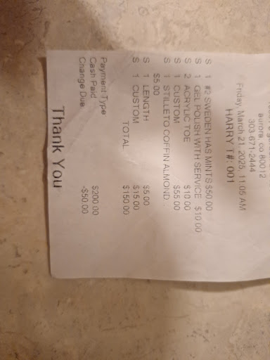 ( don't believe these reviews they get a discount if they give 5 stars) I've been to this nail salon a couple of times, and each time has been bad, but I give it the benefit of the doubt because Kim gives the best pedicures and massages. A lot of places or full from appointments, so both my sister and I went in for full sets and pedicures since they had open space for walk ins. We both got the Sweden pedicure option. However, our times were completely different she did not get hot rags, no massages, and the cleaning was bare minimum. There was a lady who worked at the front desk who didn't greet us. She just directed us to a tablet to sign in. She then proceeds to sit in front of our chairs while getting a pedicure. My sister and I smile every time we make eye contact because it's a little bit awkward she then proceeds to roll her eyes every single time she starts to give dirty looks and then she walks around to another co-worker says something in her language and that co-worker then begins to stare at my sister and i. We felt very uncomfortable. It was supposed to be a fun girl's day, and that wasn't I was started off. We went to get our full sets done, and we both got almond short nails. However, I was charged for length. While we were getting our full sets done that same lady who was rolling her eyes while we were getting a pedicure begins to continuously walk back and forth every little while making it a go to look at us. We were there for about 4 hours. It was an unpleasant experience, and the prices are outrageous. As for the full set themselves the nail length weren't even I reminded him about drilling underneath since there was globbed acrylic the I know what eventually get caught on clothes and hair and he said I'll do it last and never did it I felt like he just said that because he didn't want to be told what to do when it wasn't bossy you was just "hey can you get this please" I'm willing to pay a high amount of money for nail, especially ones I love, but they are purposely over charing customers and giving inconsistent services, pricing, and quality. This, however, was the last straw, and I will not be going back or...