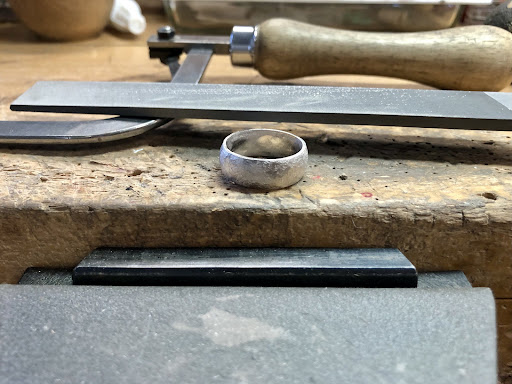 She had done a couple of small projects for us. She repaired a pendant; and then resized a ring that two other jewelers said couldn't be fixed. Next we took her a ring that needed a wider band to balance a large stone and the result was flawless. So naturally, when we needed to commission our wedding rings, we turned to her.