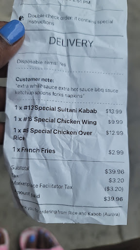 Read moreI visit this place when I have been in the area and I have never been disappointed. I am always happy with my experience and choices at rice and kabob. My favorites are the #13 which is the 3 skewer option which can be a combo of chicken and meat but I pick all as chicken because they are tasty, juicy and flavorful! I also like the chicken over rice and the gyro over rice, the combo is great too! The biryanis are awesome just like the gheymeh stew they have sometimes but run out quickly because they are popular. The quality, portion, price and taste is great and they offer a drink of your choice with the meal so why not go here when everything is affordable, food is tasty, filling and a good portion you can always take your food home when you can't finish it so it's all a plus and I recommend this place...