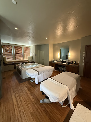 The spa itself is beautiful. Very tranquil. I love how the treatment rooms are arranged. Jacuzzi tubs and steam showers are in the rooms along with the treatment tables. So, guests stay in one room for their spa services. Your aestheticians and massage therapists come to you.