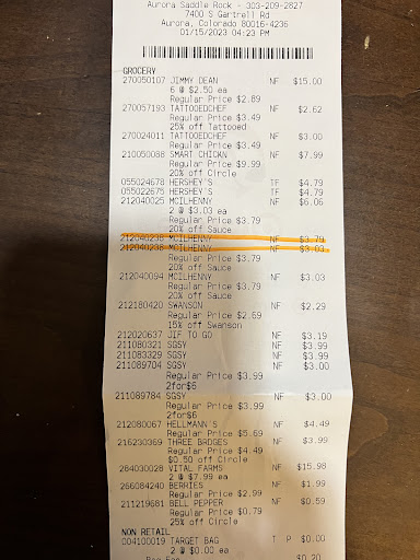 Let me begin with I love Target! Whenever I go to Target is to unwind and relax. I was just at Target the location is Aurora Saddle Rock 7400 S Gartrell Rd. Specific date is today Sunday, April 2, 2023 at 6:51pm. I was doing some Sunday shopping minding my own business. I go to self check out to scan two items an Oxy Clean and a Laundry Detergent. I am then questioned by an older white woman wearing a plaid shirt that was red and black and she was wearing jeans. I did not catch this rude womanâs name! She then proceeded to accuse me of stealing!!!!!!!!!!!!! I have worked in the retail world for many, many years you cannot accuse a person of stealing because you are just an employee. That is why there is loss prevention! I felt so targeted is it because of my appearance, my skin complexion. I do not want to make accusations but I felt like she said âHey arenât you going to scan that?â because of the way I look? That is why this country is so divided because of women like her I do not want to use the term Karen but thatâs how this woman was acting. Like do you not know this country is a melting pot of different ethnicities and backgrounds. I did not want to become vulgar and cause a scene. This older man even intervened and said to this awful employee calm down! I literally put the oxy clean in my reusable tote because I did not want to purchase a plastic bag that will harm the environment. I never go and leave reviews but this employee should be trained better! I do want to thank Rob the manager of this Target location and the younger gentleman of loss prevention in assisting me in this situation. Rob was very polite and let me explain my situation and apologized on her behalf. I just want to reiterate that it is not the employees business to accuse someone of theft there a procedures and protocols and staff in place! There is even laws in place when you are falsely accused of theft where I can sue for damages against myself. I just hope this woman is talked to and no one goes through this...