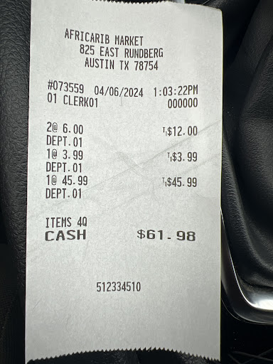 Read moreBe careful shopping here or donât shop here at all. The prices on the items are not what you get charged for. The owner who is also the cashier of this store is a thief. He adds extra cost to every item on your receipt. More over , the receipt doesnât have description so itâs just a list of prices that you canât identify what goes with what. When you go to ask him about it, he will tell you if you donât like it donât shop there. We spoke to other clients who have shopped there before and they said he does the same to everyone. Adding extra cost to each item at check out is stealing and charging extra taxes is wrong and illegal. I will never shop here or recommend anyone to shop here. Find other African...