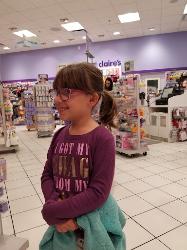 Read moreTook my daughter to this Claire's to get her ears pierced. We were greeted by a smiling lady wearing fairy wings, who cheerfully explained the process and helped my daughter pick her starter earrings. While waiting in line, we saw the process, that there were actually two ladies piercing each child's ears both ears at the same time. This is a great idea, because I've heard that oftentimes a child will lose courage after the first ear and end up not getting both ears pierced. This way it's a one-shot deal. We watched 3 kids ahead of us had this done, nice and quick. Both ladies were smiling and caring towards the kids. When my daughter's turn came, it went well too. Afterwards, included in the price of the piercing, they provide this more expensive quick-healing liquid that is supposed to heal the ear fully in 3 weeks instead of the normal 6 weeks. It did work well and it's been about a month now with no issues, and my daughter has been able to change her own earrings for new ones that we also bought at this mall. ...