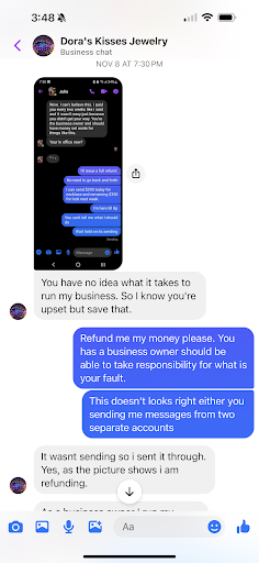 Anyone who does business with this lady ⚠️⚠️BECARFUL⚠️⚠️⚠️ I placed a layaway with her months ago paid it in full and then waited weeks for my things. Then she stated she was having problems with her dealer but in all reality she is going bankrupt. Promised to order other things in exchange even ended up stating she would do a refund. I then waited two weeks for PayPal to turn around cancel the refund due to her financial institution saying she had insufficient funds 😮😮 SO I disputed it through PayPal the best way I could. This lady still owes me $175 from a payment in the amount of $295 I accidentally sent her instead of sending a request. Attached is all the screenshots from our conversations not to include what she says in person. Also all I can say is always send Venmo’s or cash app’s with the buying an item! Unfortunately i have taken a lost to this reason. Due to that I can’t dispute it with Venmo on all the cash payments I made. Please SHARE! I’m sure I’m not the first or only person this has happened to.