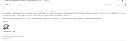 Next thing I know I'm being called every SINGLE DAY sometimes 3 times a day and blowing me up with emails. They kept charging my account and after I spoke with a representative they apologized and said "we will make a note on this account" nothing else was said so I assumed that meant they would stop. It didn't and they kept charging me. So finally I called and made a complaint being told no upper management was available to speak to at the moment and they would “call me back when the GM was around” never heard a thing….and so I canceled my card. Since then they have still continuously called and emailed me. At this point I ignored them almost changed my number so it would just stop. They sent me notifications saying I owed them money so once again I spoke with someone at the desk informing them I already canceled months ago "they apologized once again" in a conniving vindictive way as if I had done something wrong and stated they had no record to indicate I canceled and that I would need to go into the location I originally signed with to go through the process once more but still owed money that I would need to pay before cancellation. Fist time ever hearing about a cancel fee as well as a “final bill” on top of what I owed them for the months I “didn’t pay for” even though I had already canceled months before changing my card. Unfortunately this ticked me off as I was dealing with a family member in the ICU and had no time on my hands to drive all the way to Austin to do this again nor was I going to pay all this money just to cancel my membership a second time. I informed them of this while it was clear I was pissed with them and their ignorance. They basically stated “we don’t make the rules” once I saw how many reviews were similar to mine I knew this was going to be an issue. No one responded to my email about my cancellation and how it was being handled. Now Jan 2nd 2024 I get an email stating they contacted a lawyer to collect a balance of $148. Is this a sick joke?? Is this fun for them to disregard anything they have promised and anything I have mentioned? It’s honestly downright disrespectful. I will NEVER go back to golds as I'm overwhelmed and exhausted with their lack of customer care and duties. This should not have happened especially on more then...