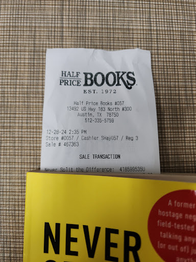 Read moreGreat place to shop at to find reasonable-priced books. I have been buying at Half Priced Books since the early 70s. You never know what out of print books you will find. One thing I don't like is that they have stopped breaking up history books into specific time periods like they used to. For instance, I like to look for books on the Old West and Half Price used to put these books in a specific area in the American History section. Now, they're all mixed up with the rest of the books on American History. This wastes alot of my time and sometimes I get frustrated and leave. I have pointed out this problem to different employees, but the issue still persists. I'm not sure if this is happening in other subject-matters sections in the store. Overall, I still...