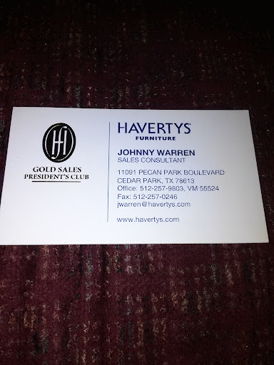 Beware of sales people selling you furniture with an extended warranty. Also, beware of poorly made furniture. I am super disappointed with Haverty's. We purchased 2 full rooms of furniture from them with an extended 5 year warranty. Our salesperson advised that short of taking a knife and stabbing our furniture, everything was covered... INCLUDING wear and tear. And if they couldn't fix it, they would replace it. This is not the truth. Over the months after purchasing our dining set from Haverty's scratches started to appear in the finish of one of the benches.